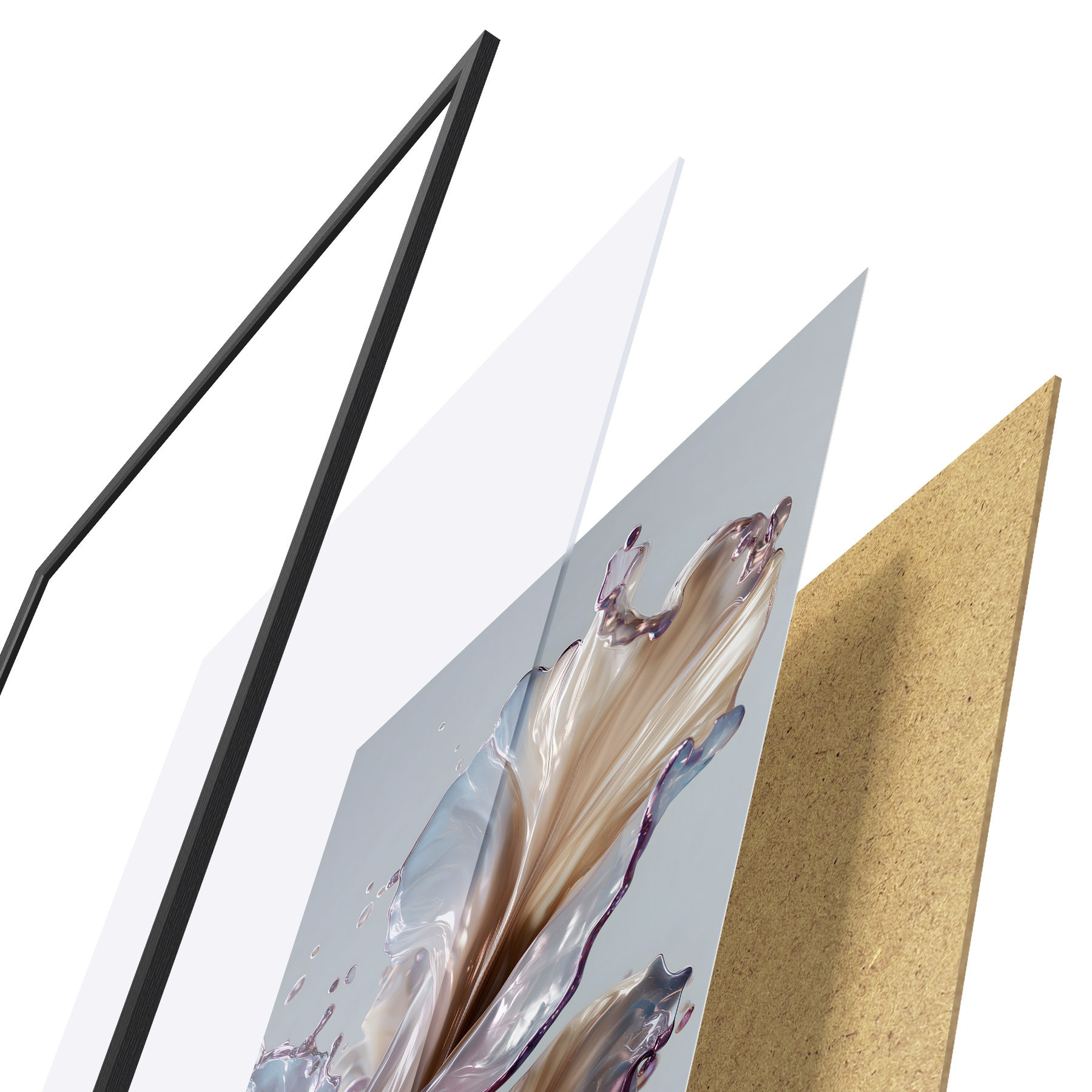 A poszter keretből, plexiből, nyomtatott képből és forgácslap hátlapból áll. A poszter a hátoldalon található rögzítőknek köszönhetően azonnal felakasztható a falra.