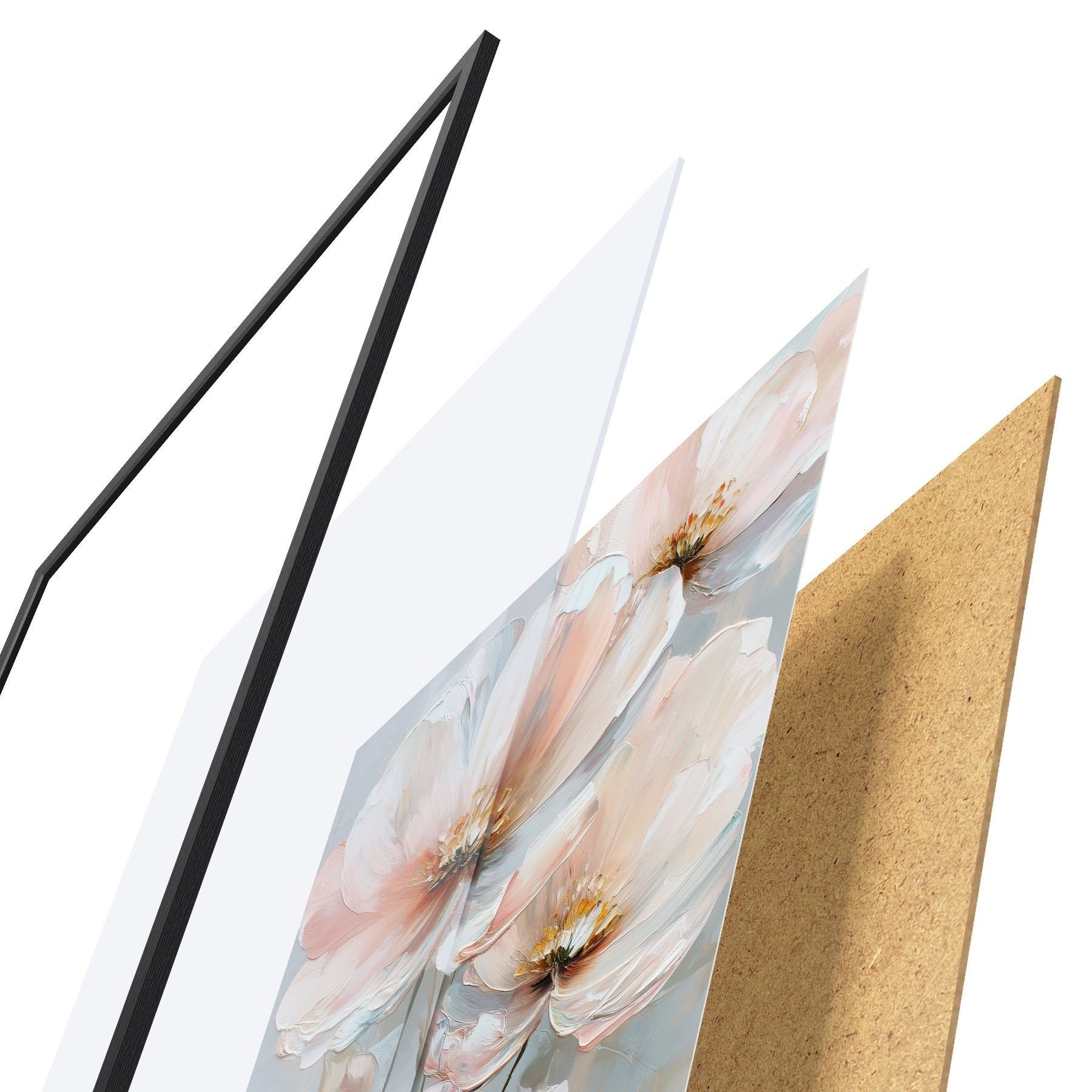 A poszter keretből, plexiből, nyomtatott képből és forgácslap hátlapból áll. A poszter a hátoldalon található rögzítőknek köszönhetően azonnal felakasztható a falra.
