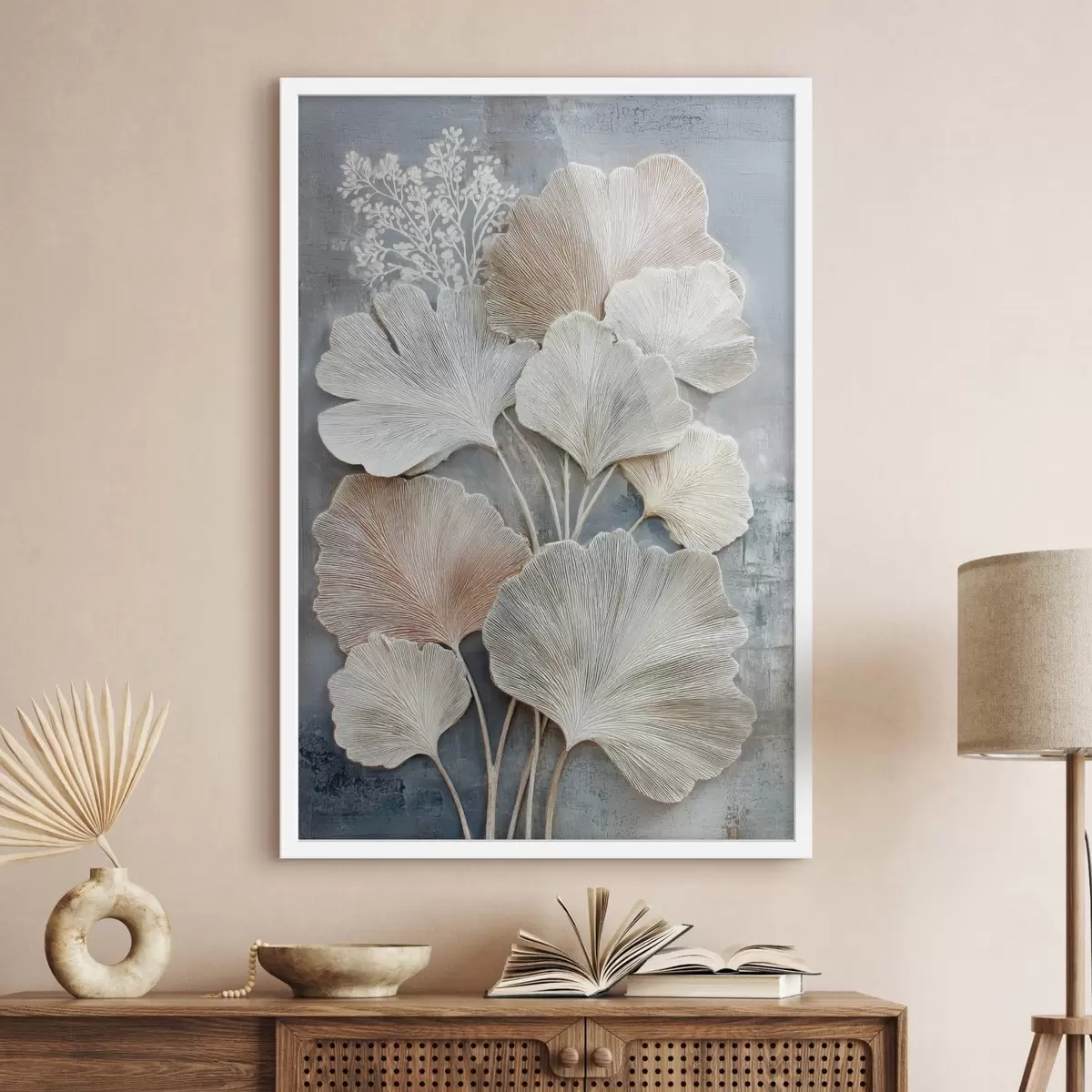 Plakát a sziklán Absztrakt virágkompozíció bézs-kék színpalettában f47963