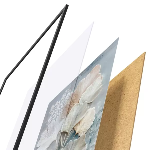 A poszter keretből, plexiből, nyomtatott képből és forgácslap hátlapból áll. A poszter a hátoldalon található rögzítőknek köszönhetően azonnal felakasztható a falra.