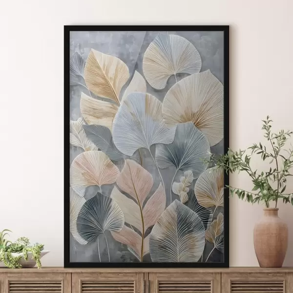 Poster Sötét háttér előtt sokszínű, kifejezett textúrájú dekoratív lombozat Nr f47964