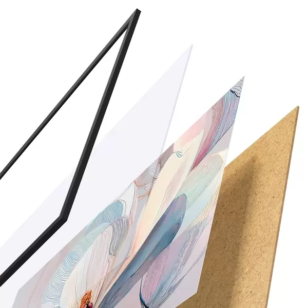 A poszter keretből, plexiből, nyomtatott képből és forgácslap hátlapból áll. A poszter a hátoldalon található rögzítőknek köszönhetően azonnal felakasztható a falra.