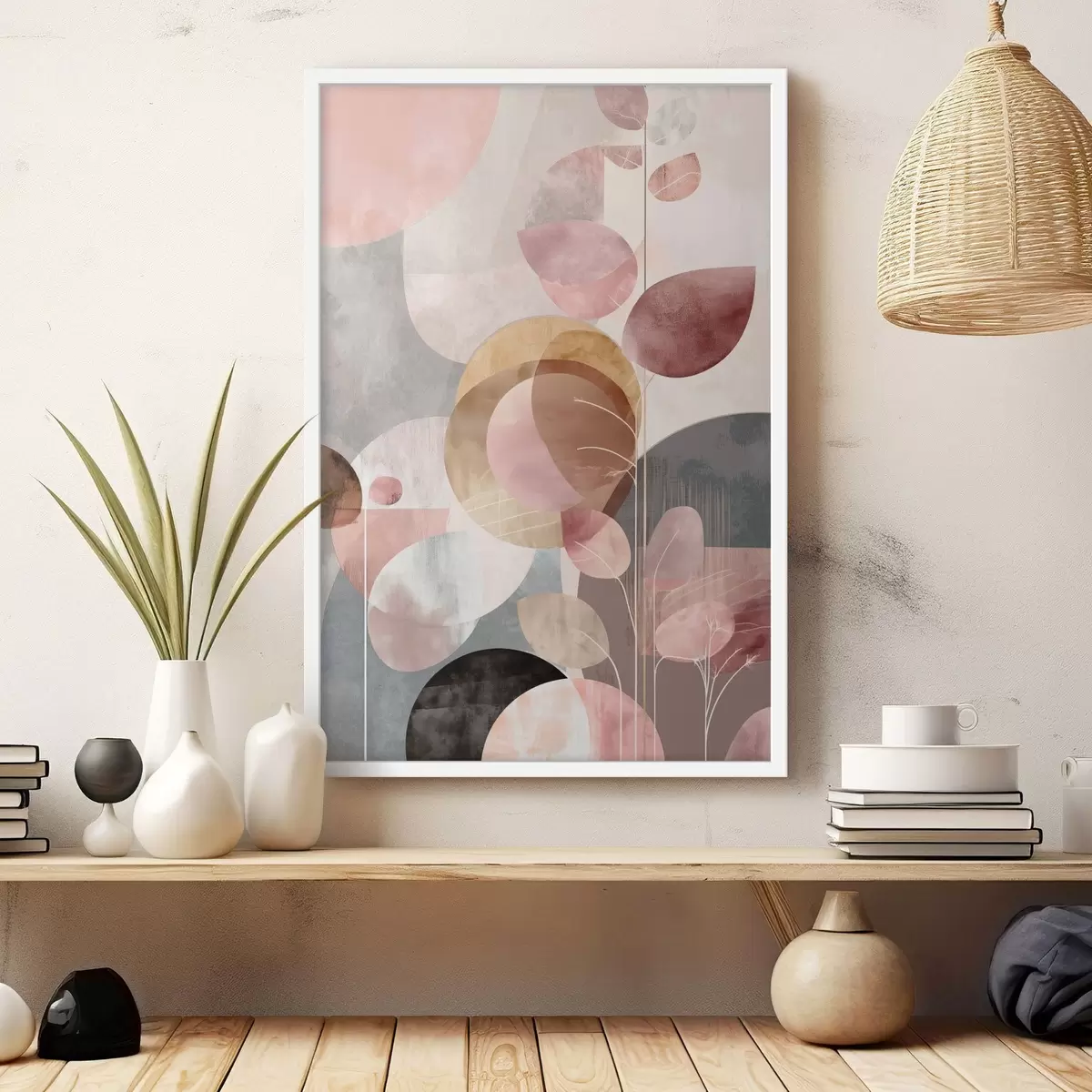 Plakát a sziklán Minimalista stílusú, bézs-rózsaszín árnyalatú virágdísz f47976