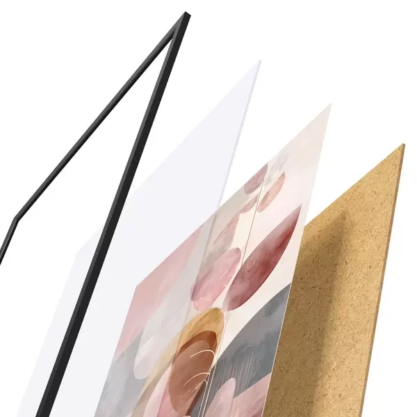 A poszter keretből, plexiből, nyomtatott képből és forgácslap hátlapból áll. A poszter a hátoldalon található rögzítőknek köszönhetően azonnal felakasztható a falra.