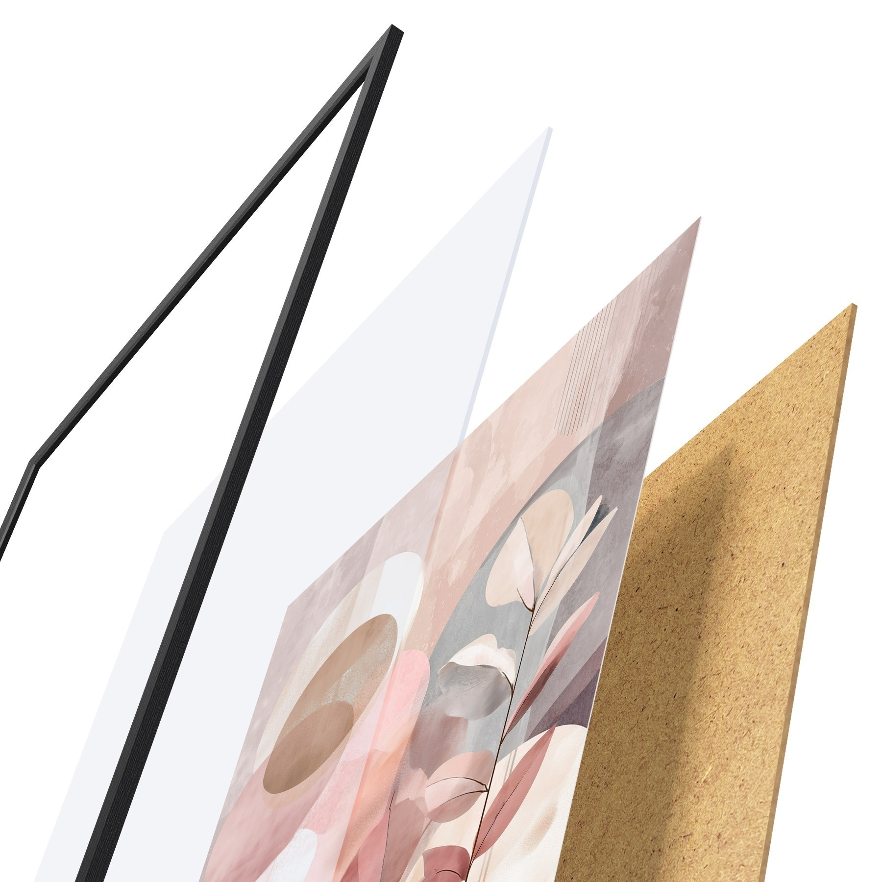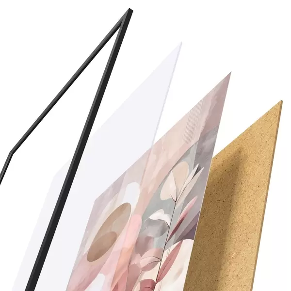 A poszter keretből, plexiből, nyomtatott képből és forgácslap hátlapból áll. A poszter a hátoldalon található rögzítőknek köszönhetően azonnal felakasztható a falra.