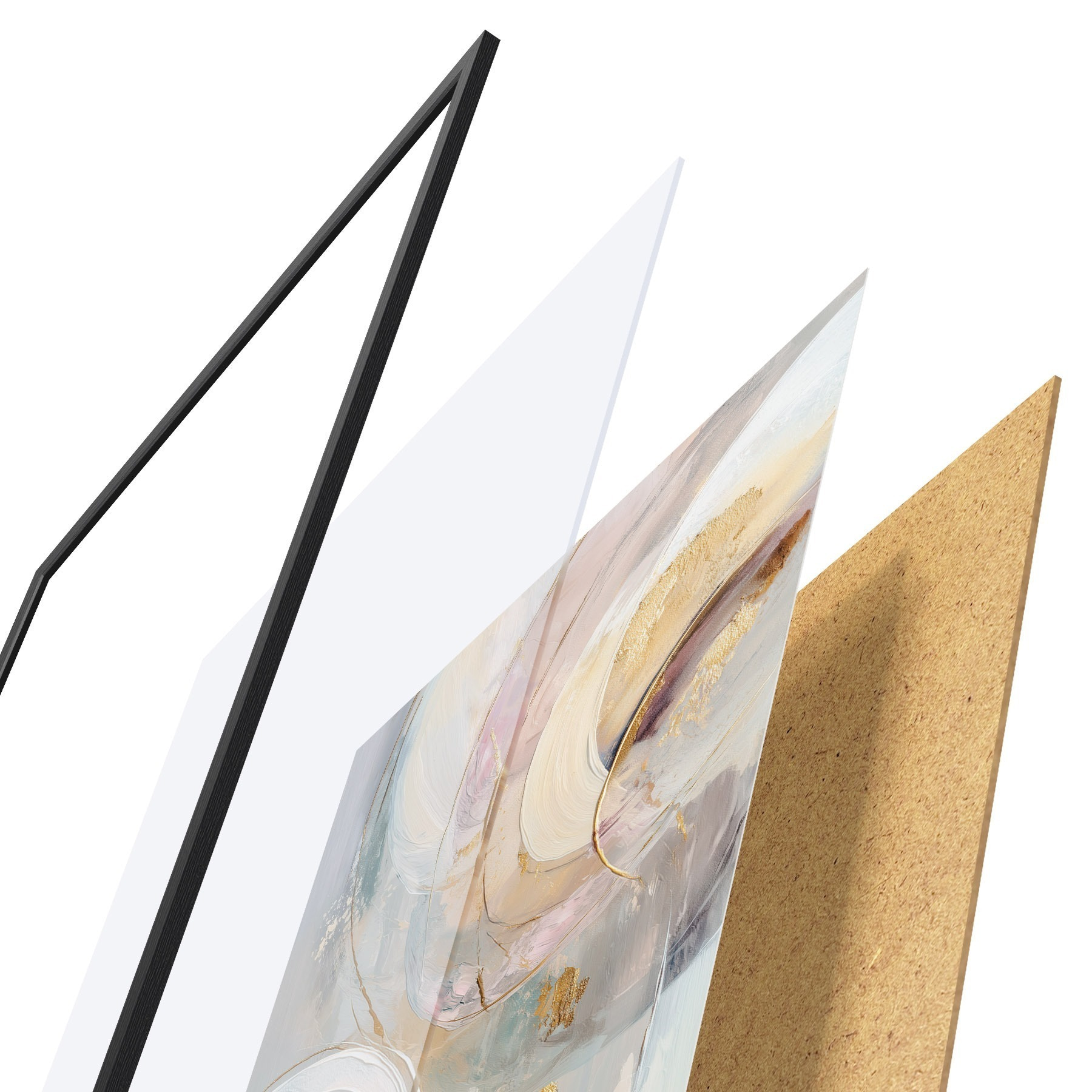 A poszter keretből, plexiből, nyomtatott képből és forgácslap hátlapból áll. A poszter a hátoldalon található rögzítőknek köszönhetően azonnal felakasztható a falra.