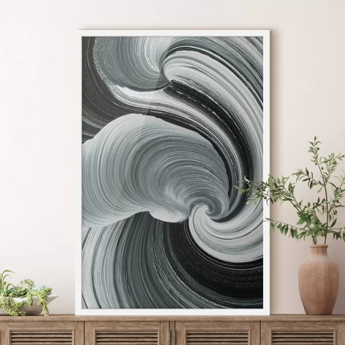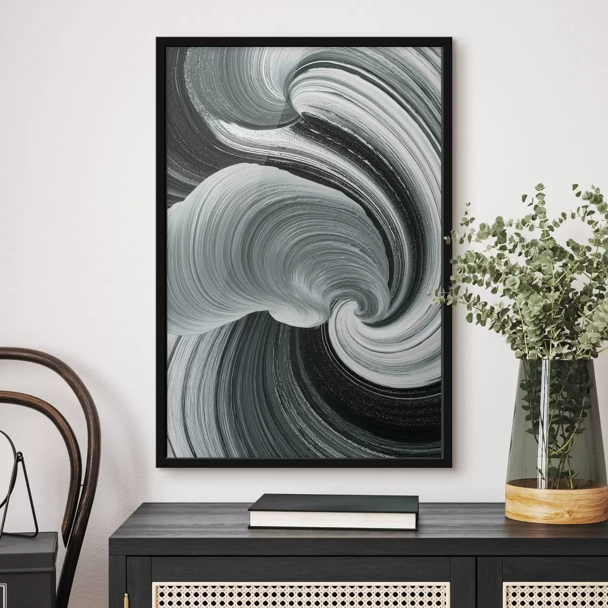 Poster Mozgásenergia: fekete-fehér absztrakt olajfestmény stílusban Nr f47990