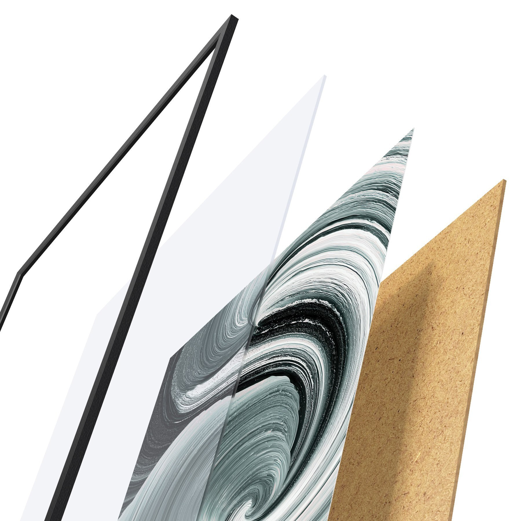A poszter keretből, plexiből, nyomtatott képből és forgácslap hátlapból áll. A poszter a hátoldalon található rögzítőknek köszönhetően azonnal felakasztható a falra.