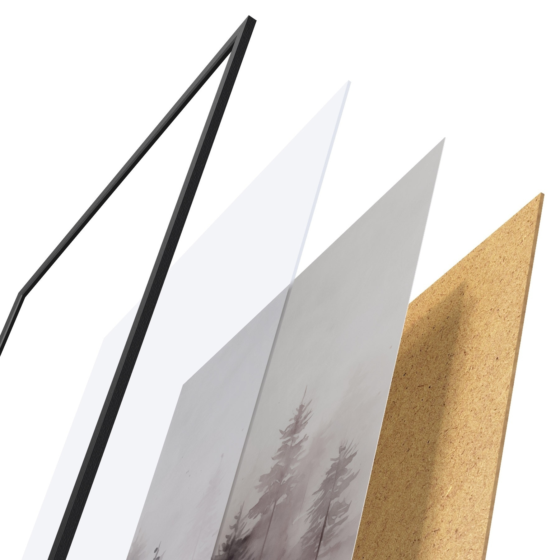 A poszter keretből, plexiből, nyomtatott képből és forgácslap hátlapból áll. A poszter a hátoldalon található rögzítőknek köszönhetően azonnal felakasztható a falra.