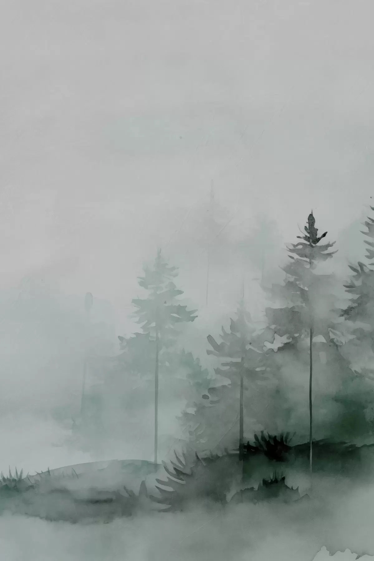 Poster Fenyőfák az erdőben, akvarell imitáció Nr f47998