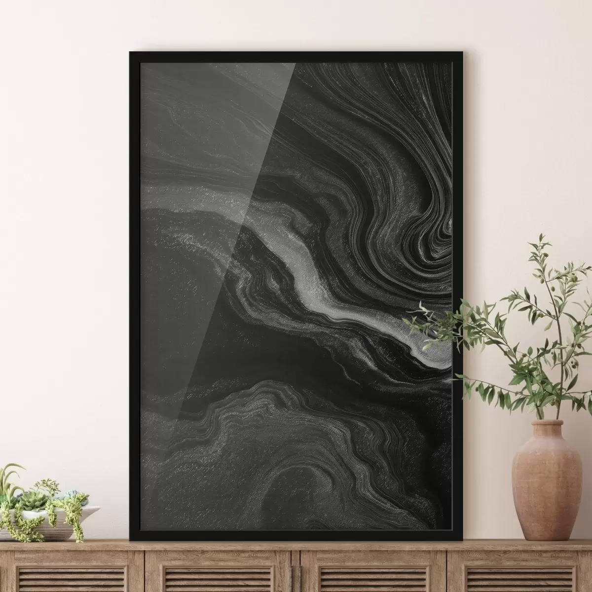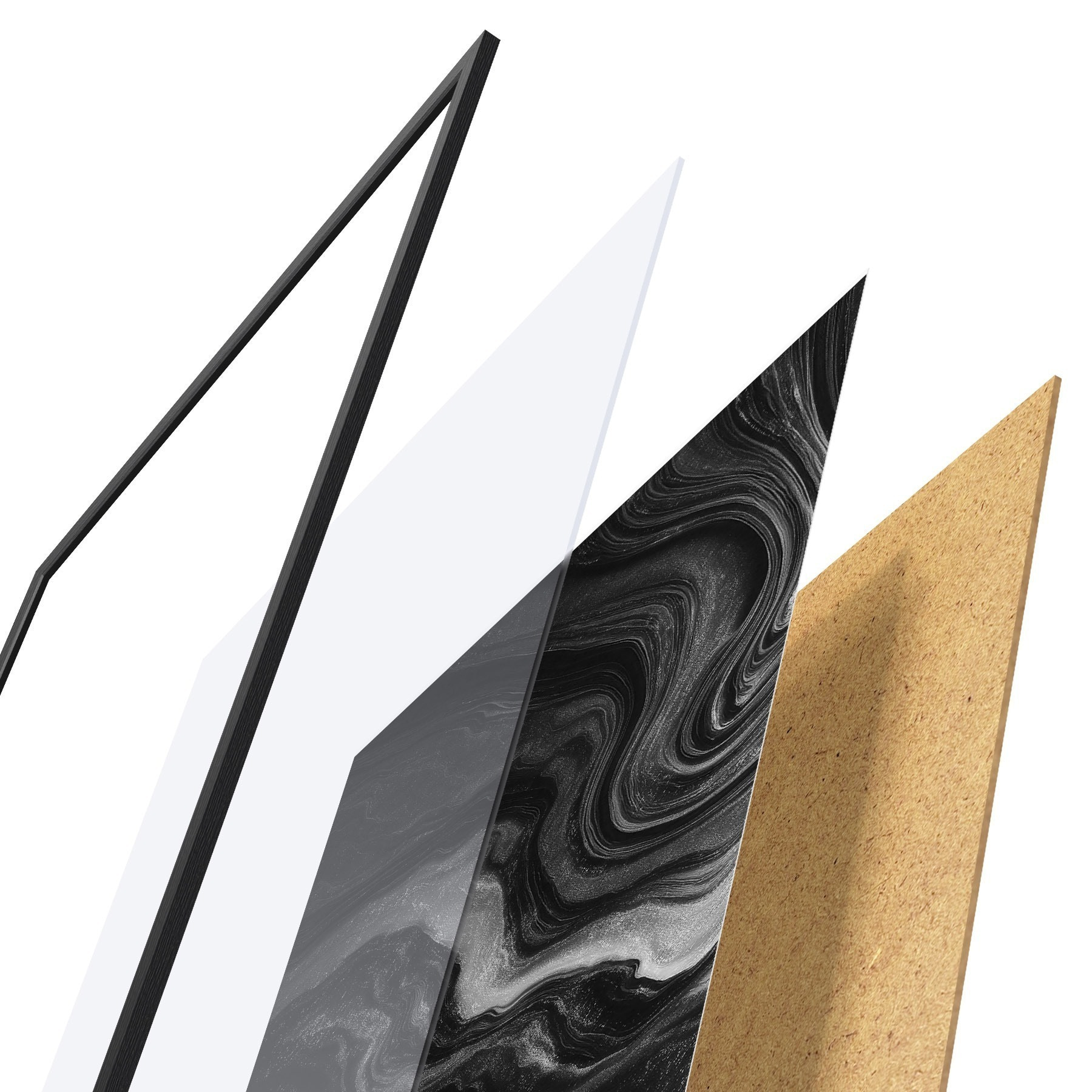 A poszter keretből, plexiből, nyomtatott képből és forgácslap hátlapból áll. A poszter a hátoldalon található rögzítőknek köszönhetően azonnal felakasztható a falra.