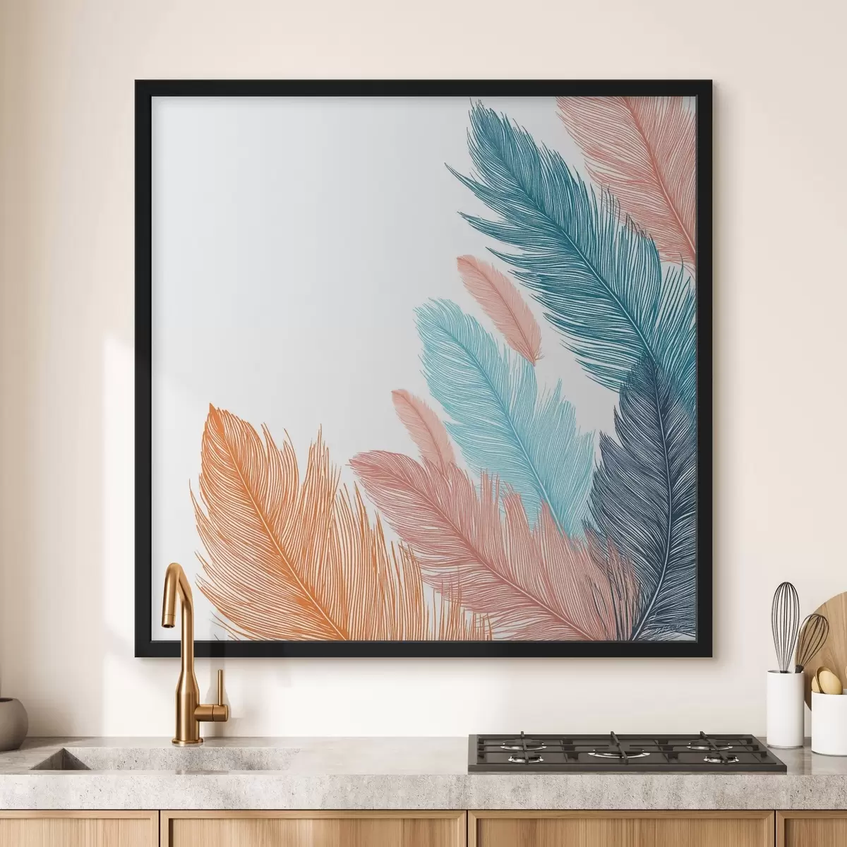 Plakát a sziklán Többszínű tollak fehér háttér előtt f48003