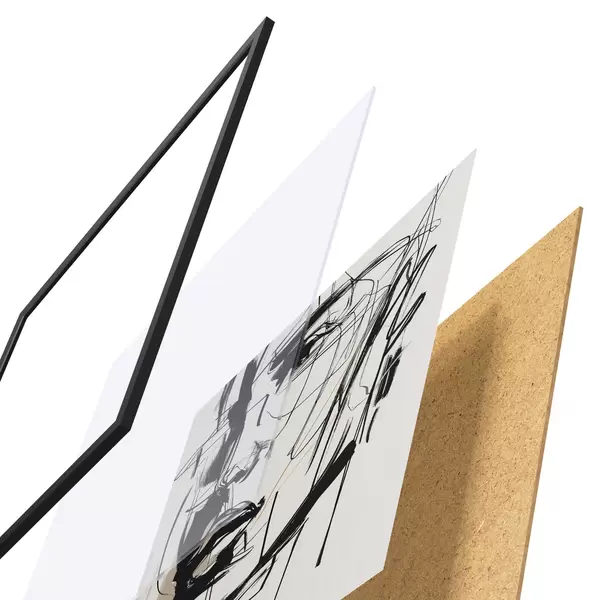 A poszter keretből, plexiből, nyomtatott képből és forgácslap hátlapból áll. A poszter a hátoldalon található rögzítőknek köszönhetően azonnal felakasztható a falra.