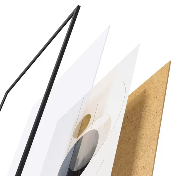 A poszter keretből, plexiből, nyomtatott képből és forgácslap hátlapból áll. A poszter a hátoldalon található rögzítőknek köszönhetően azonnal felakasztható a falra.