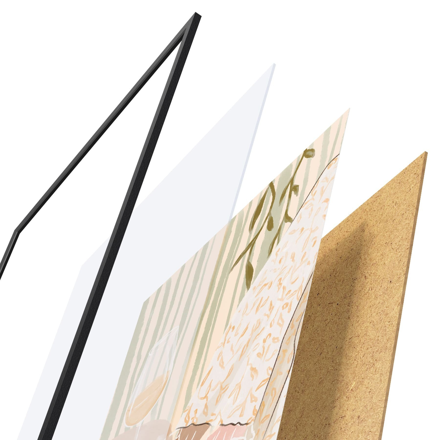 A poszter keretből, plexiből, nyomtatott képből és forgácslap hátlapból áll. A poszter a hátoldalon található rögzítőknek köszönhetően azonnal felakasztható a falra.