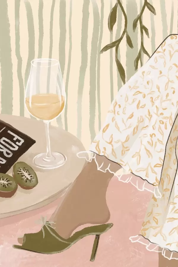 Poster Asztal borospohárral és kivi gyümölccsel, ruha mellett Nr f48021
