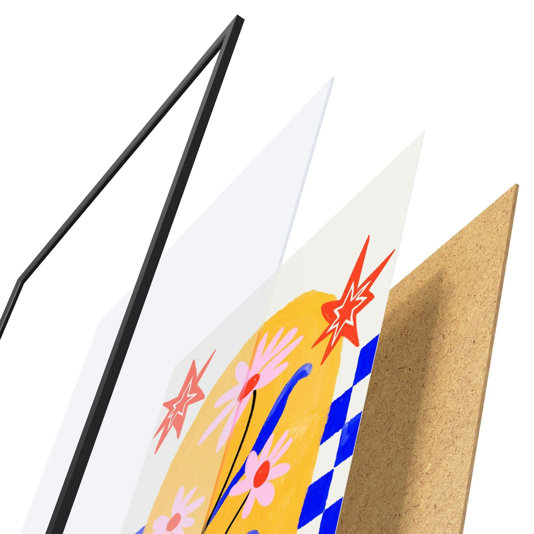 A poszter keretből, plexiből, nyomtatott képből és forgácslap hátlapból áll. A poszter a hátoldalon található rögzítőknek köszönhetően azonnal felakasztható a falra.