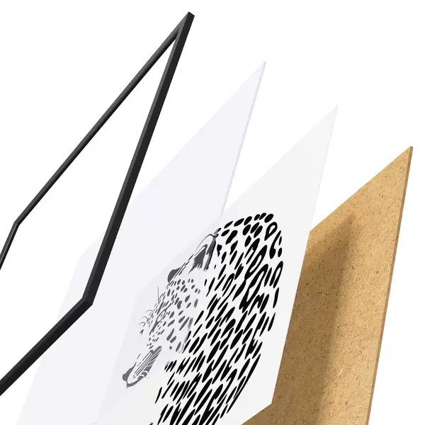 A poszter keretből, plexiből, nyomtatott képből és forgácslap hátlapból áll. A poszter a hátoldalon található rögzítőknek köszönhetően azonnal felakasztható a falra.