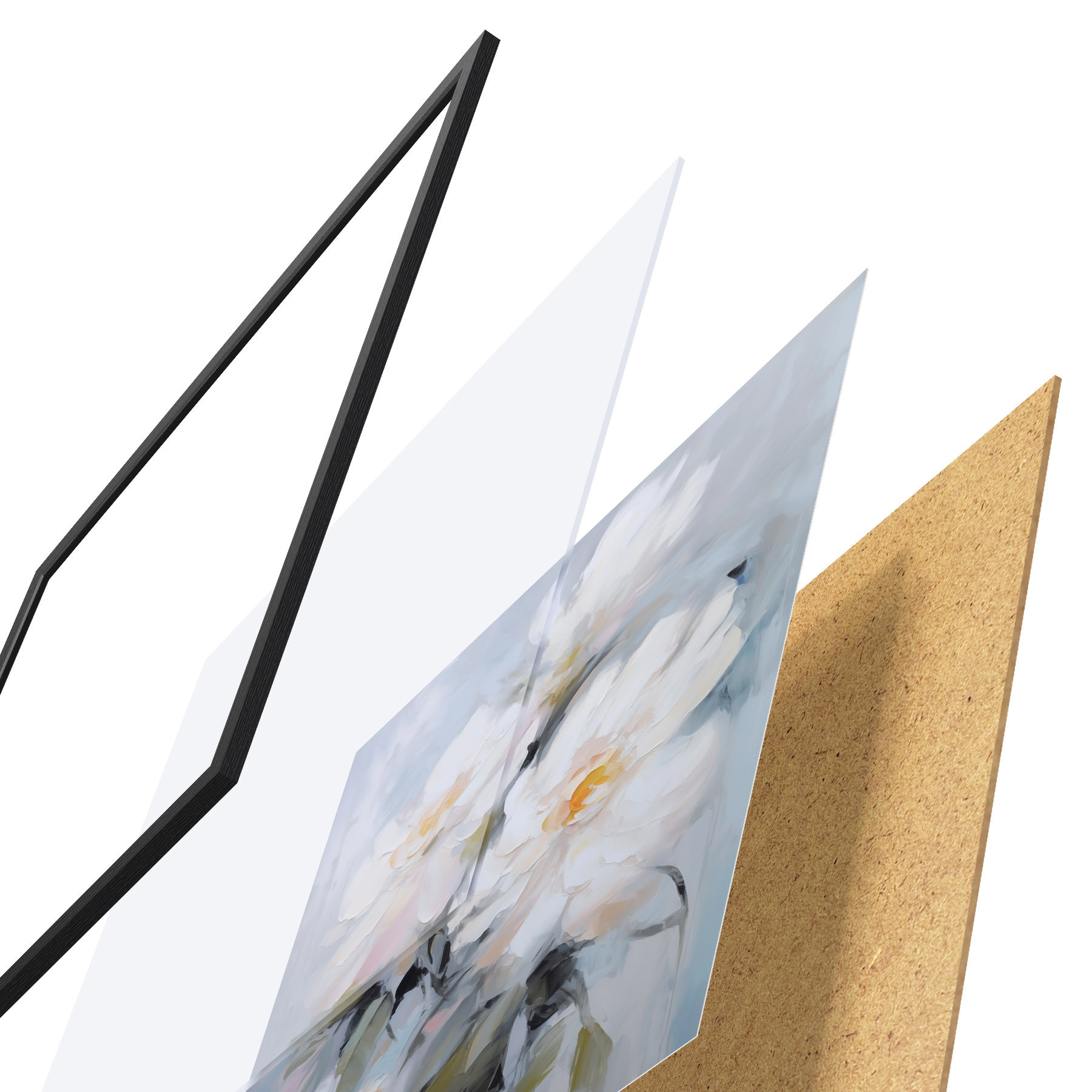 A poszter keretből, plexiből, nyomtatott képből és forgácslap hátlapból áll. A poszter a hátoldalon található rögzítőknek köszönhetően azonnal felakasztható a falra.
