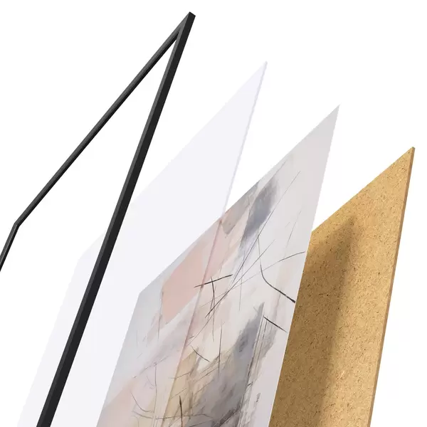 A poszter keretből, plexiből, nyomtatott képből és forgácslap hátlapból áll. A poszter a hátoldalon található rögzítőknek köszönhetően azonnal felakasztható a falra.