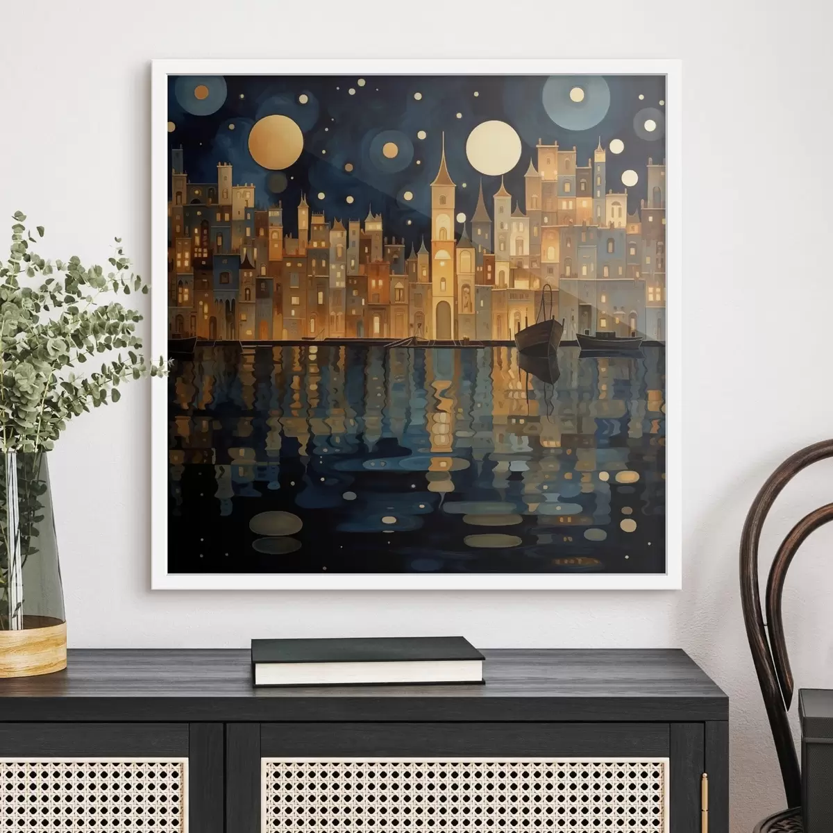 Poster szeszélyes éjszakai város a víz mellett Nr f48063