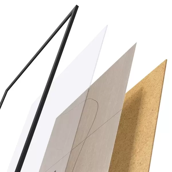 A poszter keretből, plexiből, nyomtatott képből és forgácslap hátlapból áll. A poszter a hátoldalon található rögzítőknek köszönhetően azonnal felakasztható a falra.