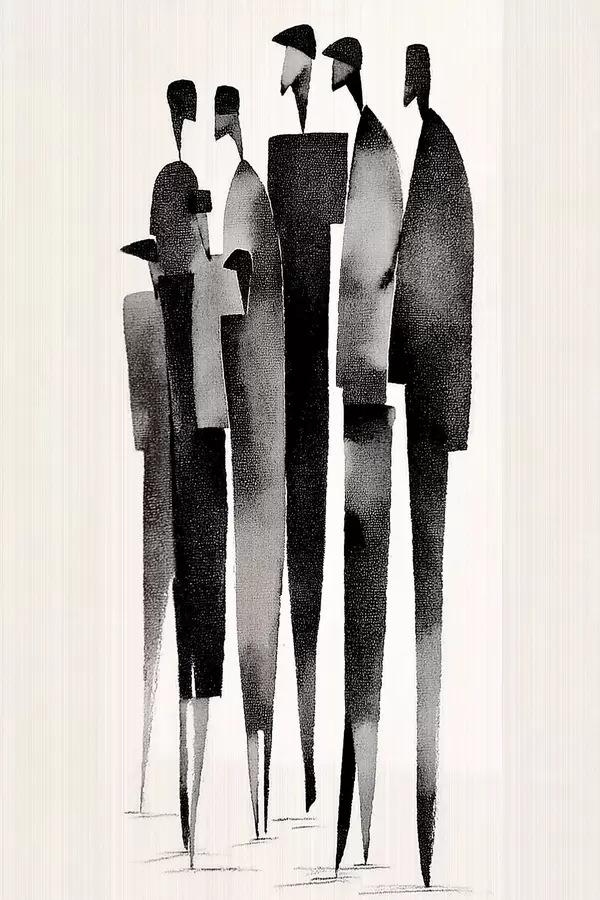 Poster minimalista, hosszúkás emberi alakok sorban állnak Nr f48068