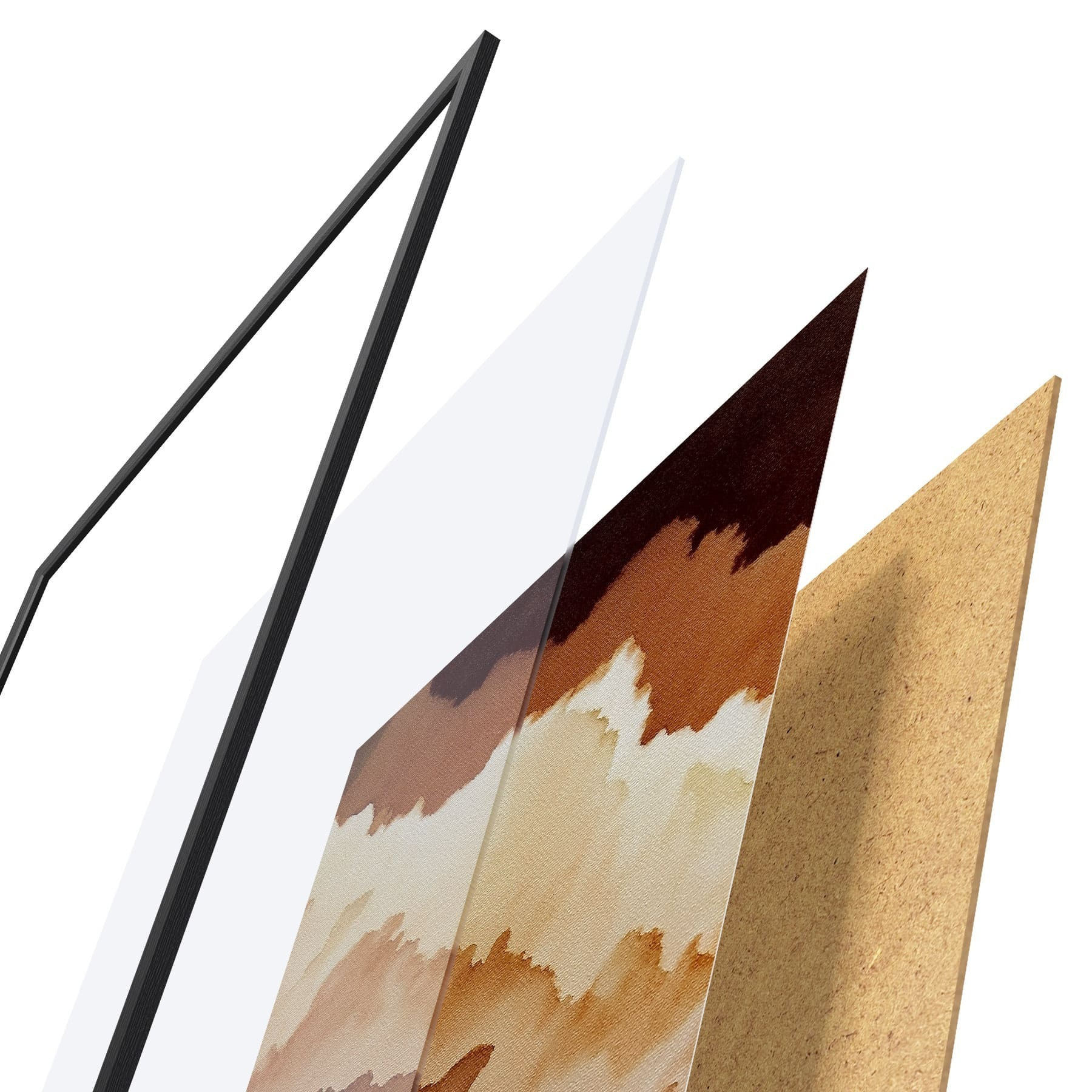 A poszter keretből, plexiből, nyomtatott képből és forgácslap hátlapból áll. A poszter a hátoldalon található rögzítőknek köszönhetően azonnal felakasztható a falra.