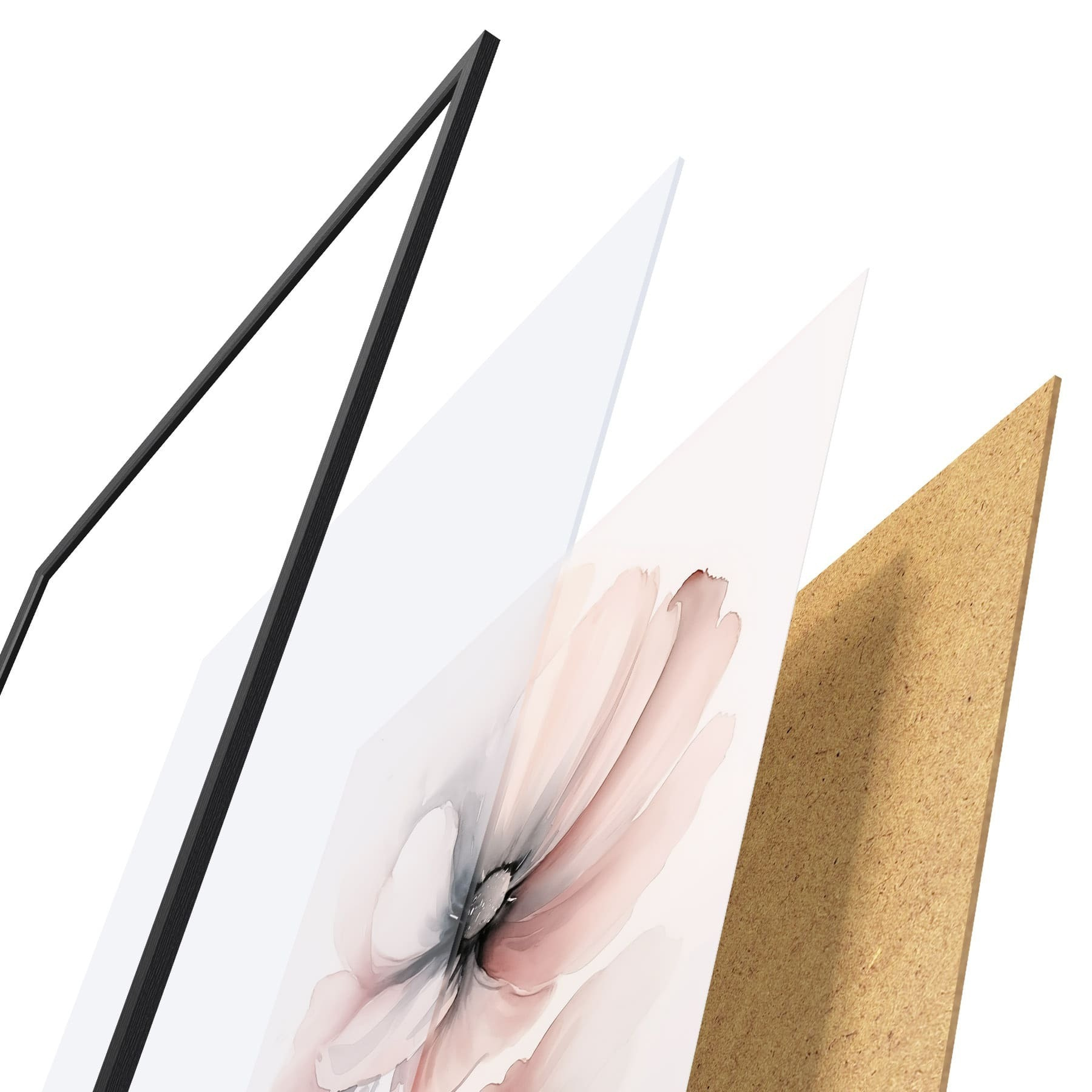 A poszter keretből, plexiből, nyomtatott képből és forgácslap hátlapból áll. A poszter a hátoldalon található rögzítőknek köszönhetően azonnal felakasztható a falra.