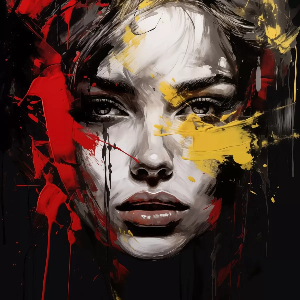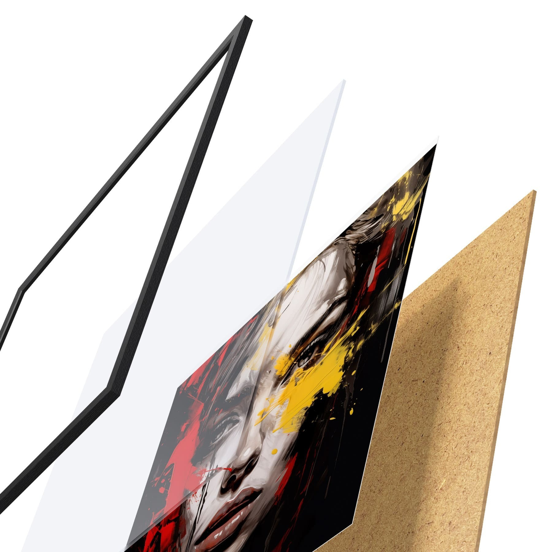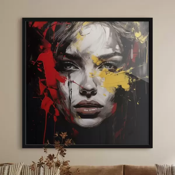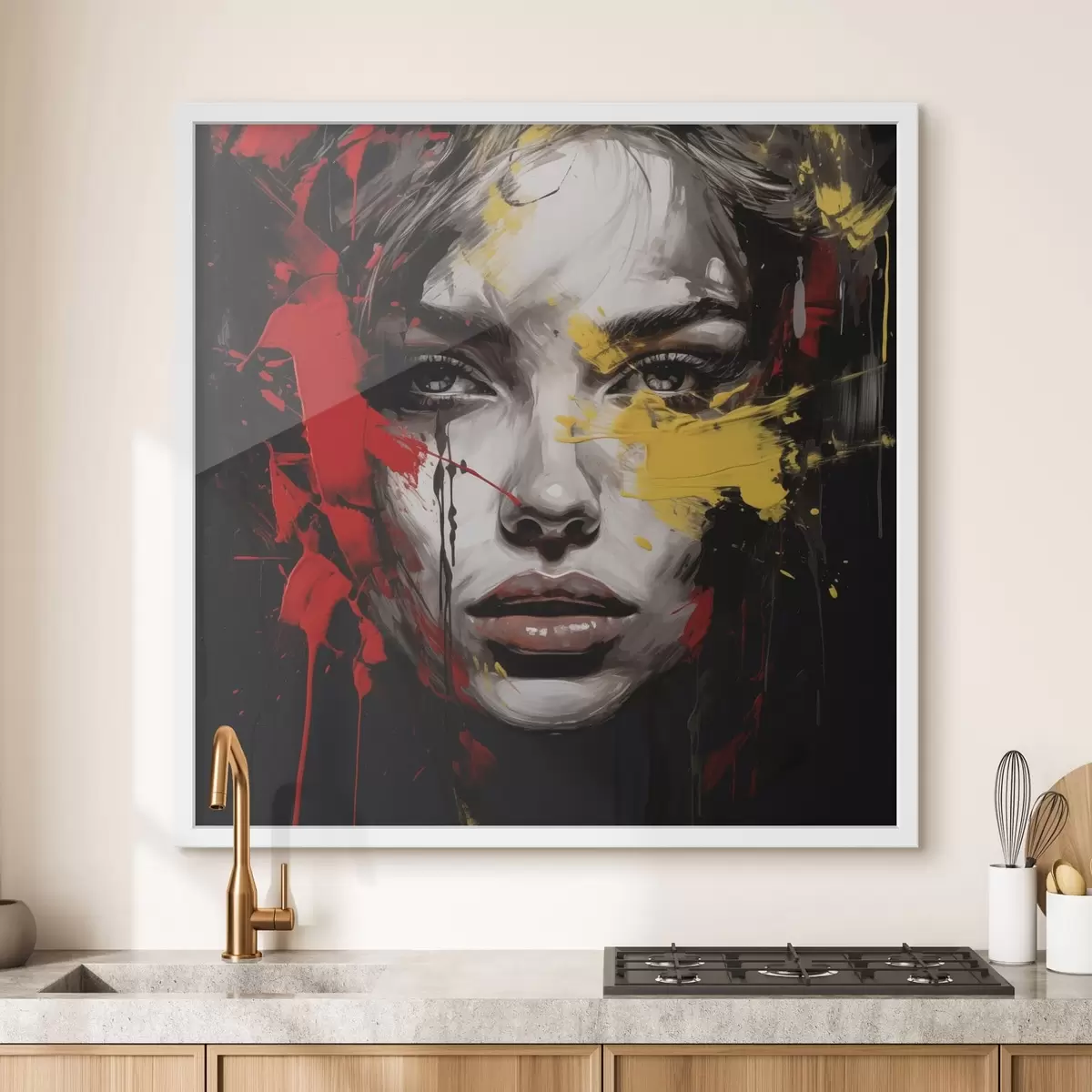 Poster Női portré piros és sárga ecsetvonásokkal Nr f48089