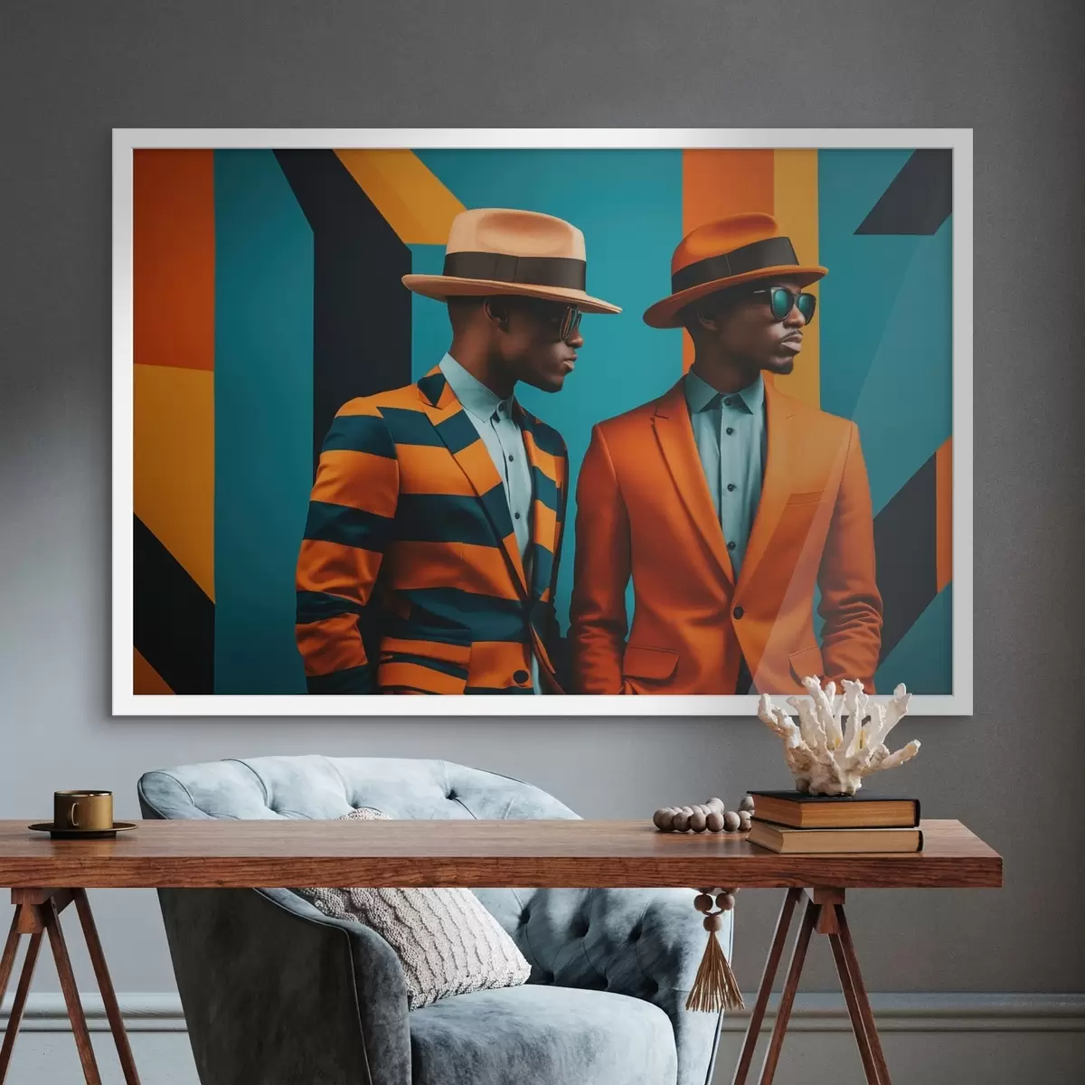 Poster Két férfi világos öltönyben és kalapban Nr f48091