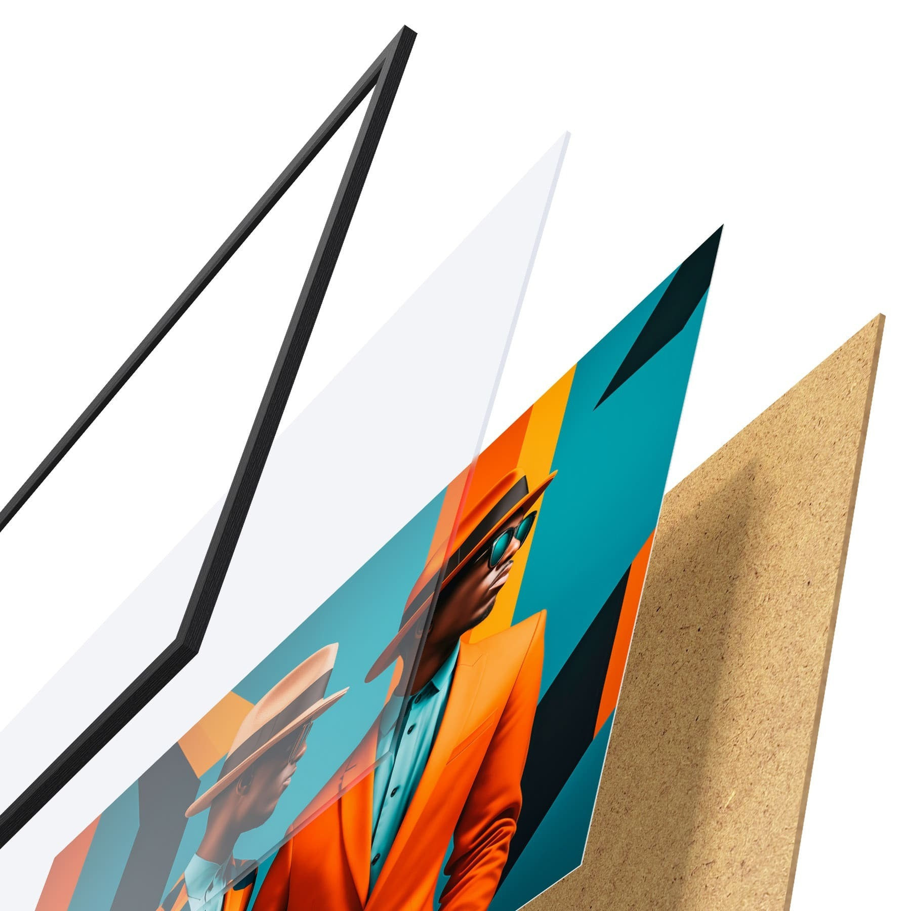A poszter keretből, plexiből, nyomtatott képből és forgácslap hátlapból áll. A poszter a hátoldalon található rögzítőknek köszönhetően azonnal felakasztható a falra.
