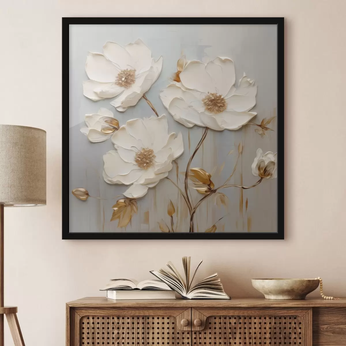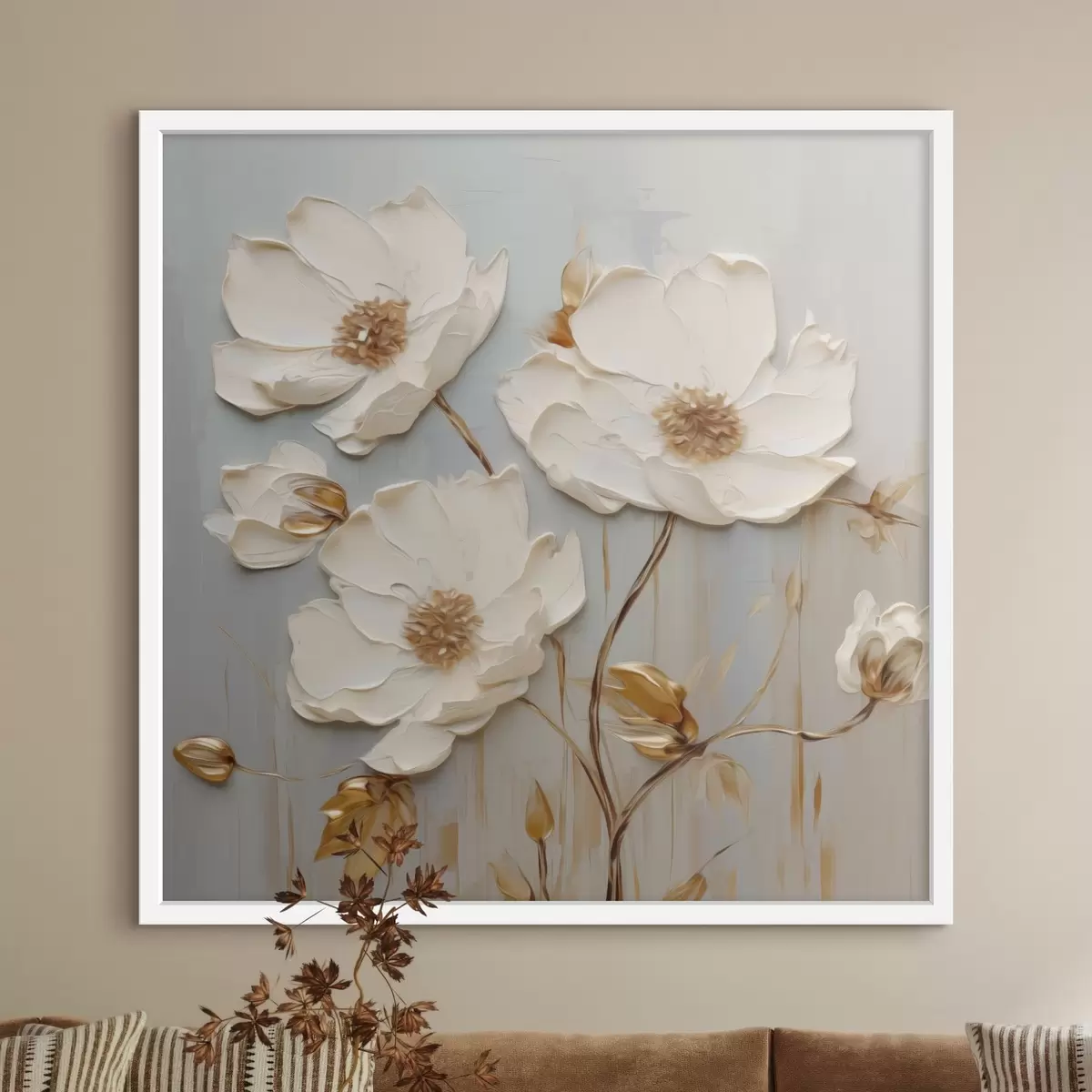 Poster Relief fehér virágok meleg levelekkel Nr f48093