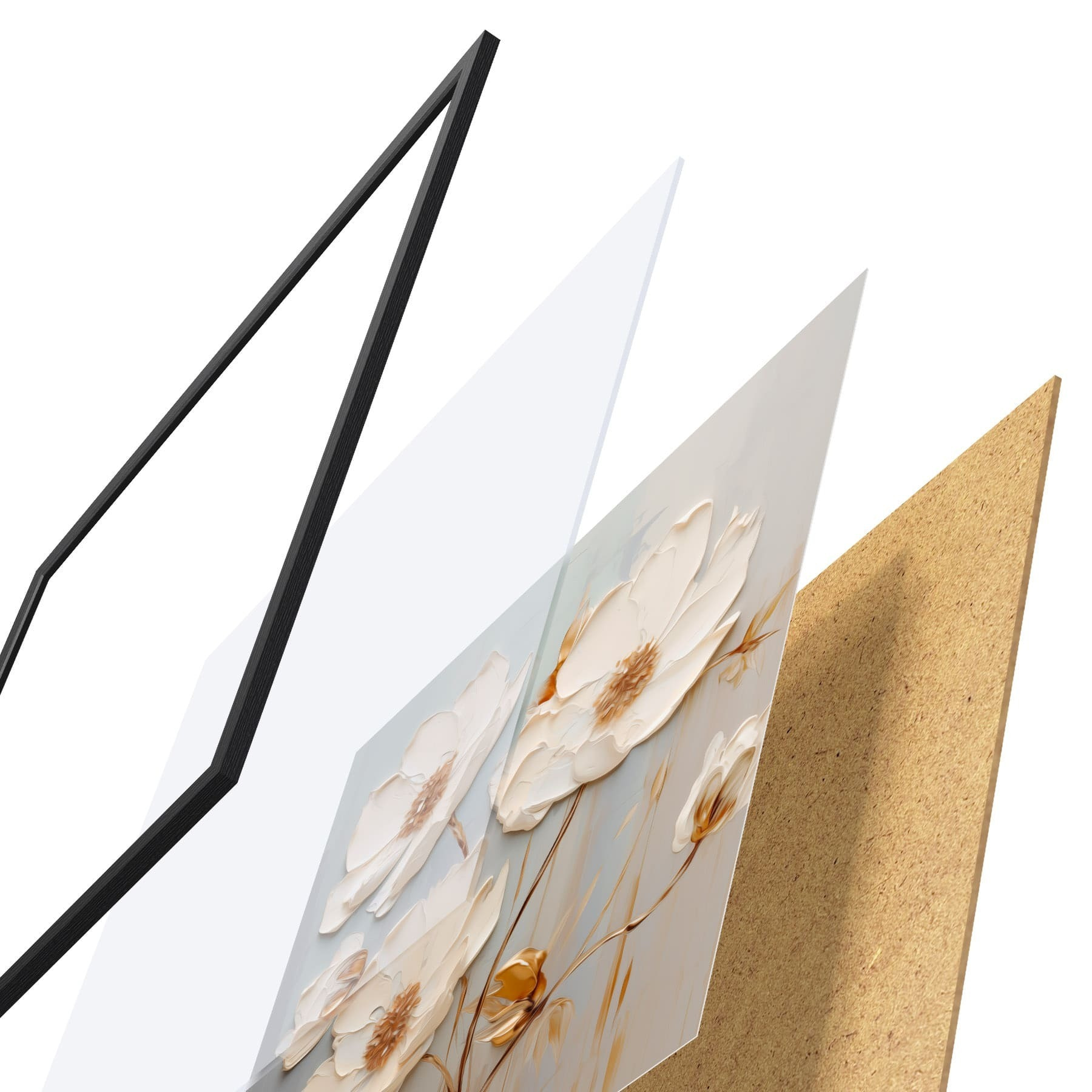 A poszter keretből, plexiből, nyomtatott képből és forgácslap hátlapból áll. A poszter a hátoldalon található rögzítőknek köszönhetően azonnal felakasztható a falra.