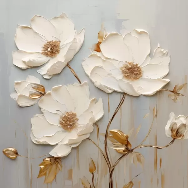Poster Relief fehér virágok meleg levelekkel Nr f48093