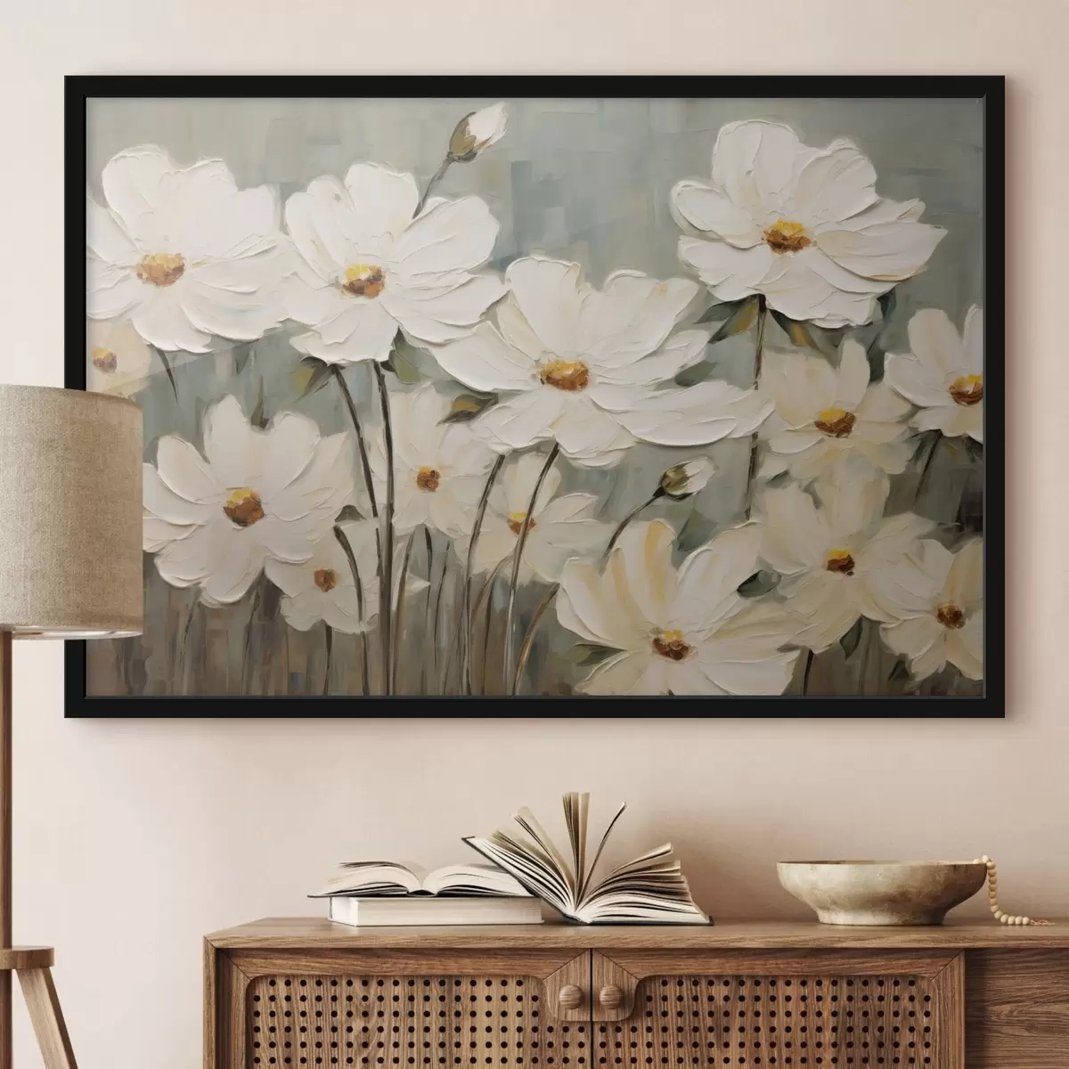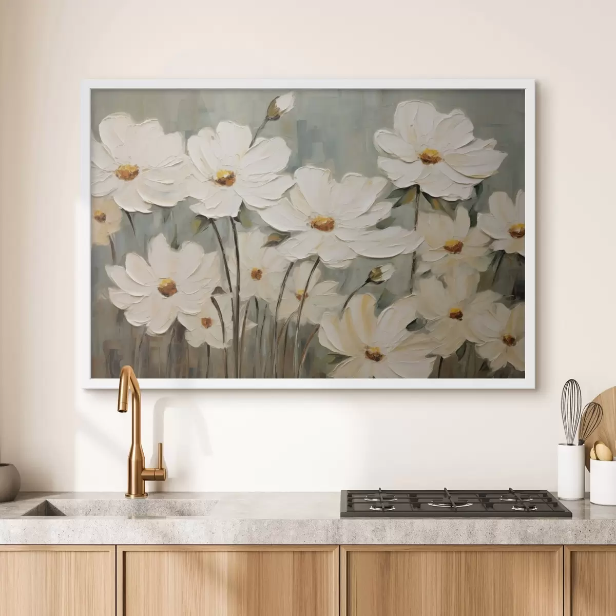 Poster Fehér virágok texturált háttérrel, ecsetvonásokkal Nr f48094