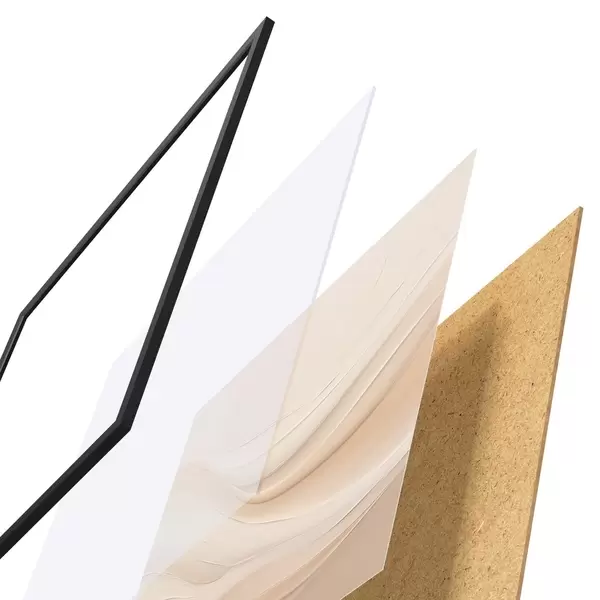 A poszter keretből, plexiből, nyomtatott képből és forgácslap hátlapból áll. A poszter a hátoldalon található rögzítőknek köszönhetően azonnal felakasztható a falra.
