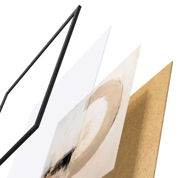 A poszter keretből, plexiből, nyomtatott képből és forgácslap hátlapból áll. A poszter a hátoldalon található rögzítőknek köszönhetően azonnal felakasztható a falra.