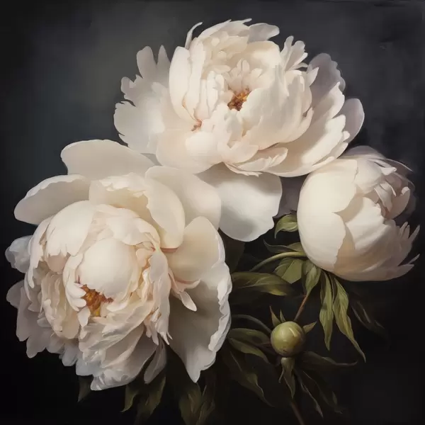 Poster Fehér pünkösdi rózsák sötét háttér előtt Nr f48101