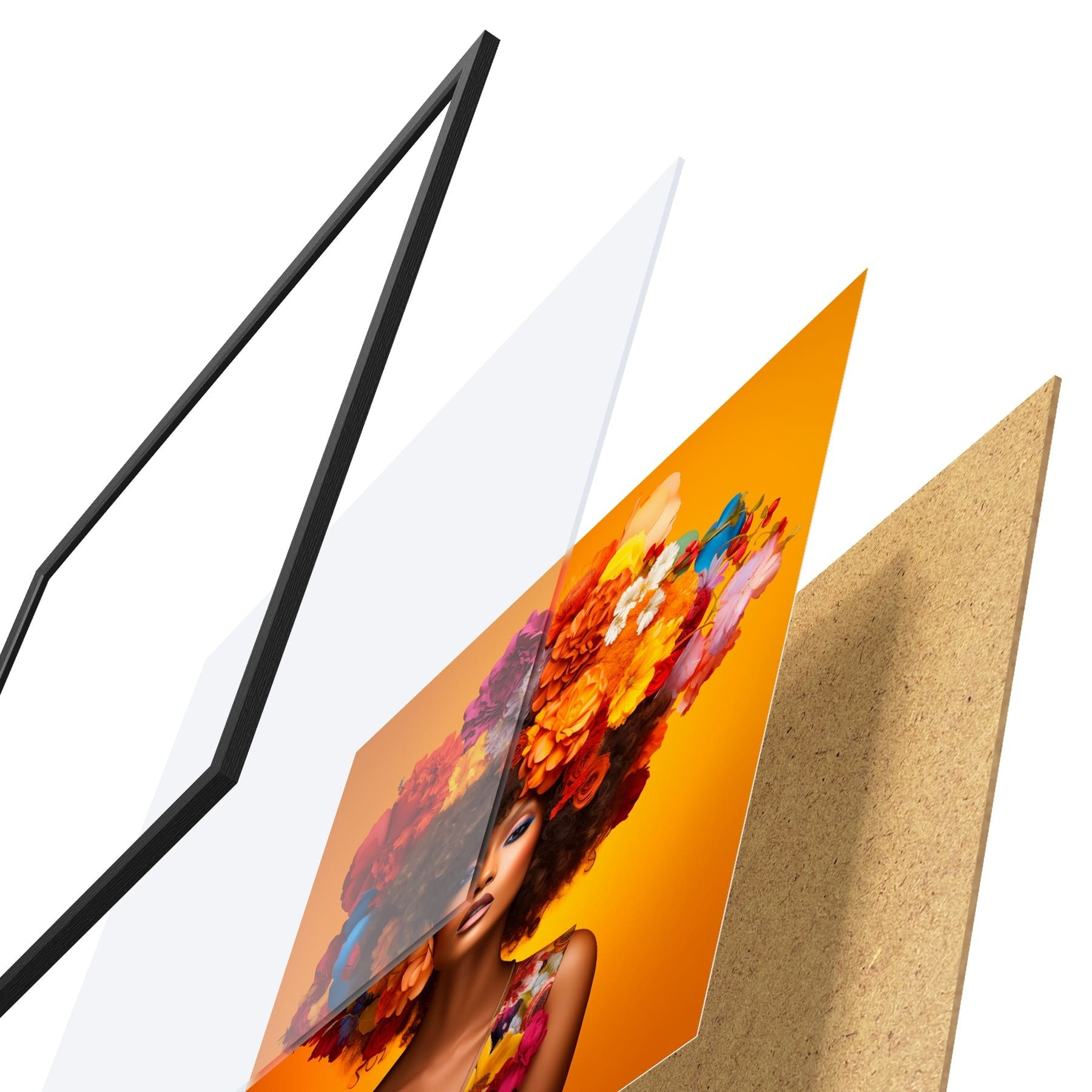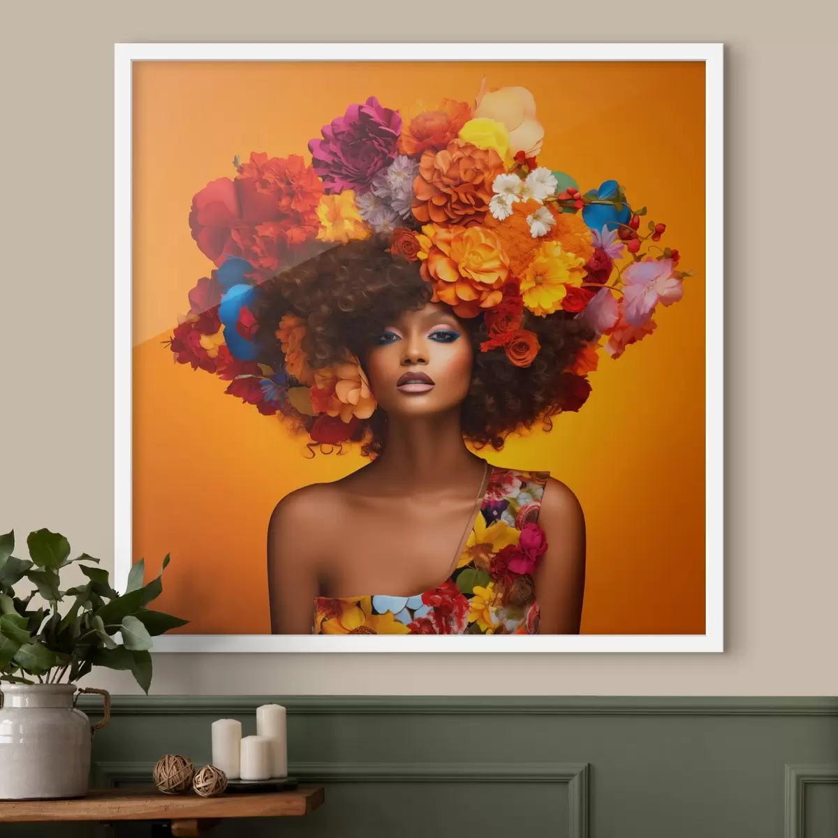 Poster Nő virágos fejdísszel narancssárga háttér előtt Nr f48102