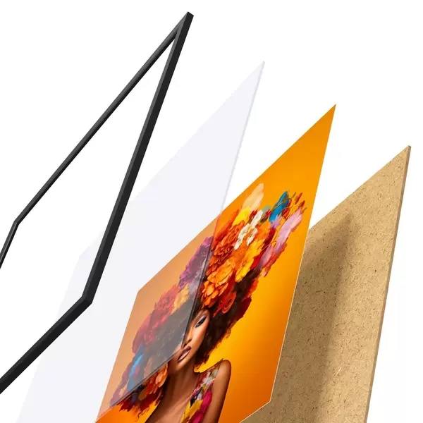 A poszter keretből, plexiből, nyomtatott képből és forgácslap hátlapból áll. A poszter a hátoldalon található rögzítőknek köszönhetően azonnal felakasztható a falra.