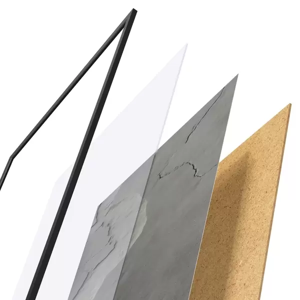 A poszter keretből, plexiből, nyomtatott képből és forgácslap hátlapból áll. A poszter a hátoldalon található rögzítőknek köszönhetően azonnal felakasztható a falra.