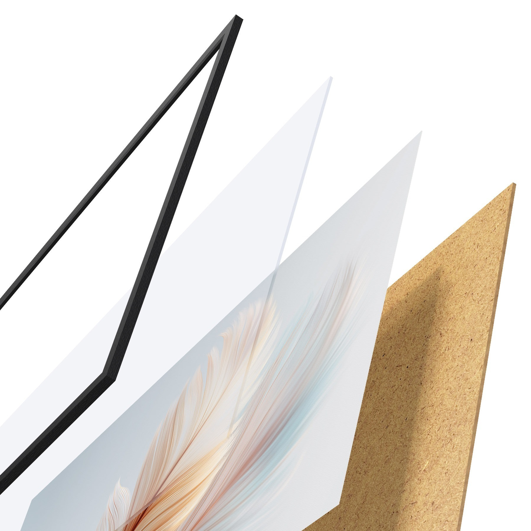 A poszter keretből, plexiből, nyomtatott képből és forgácslap hátlapból áll. A poszter a hátoldalon található rögzítőknek köszönhetően azonnal felakasztható a falra.