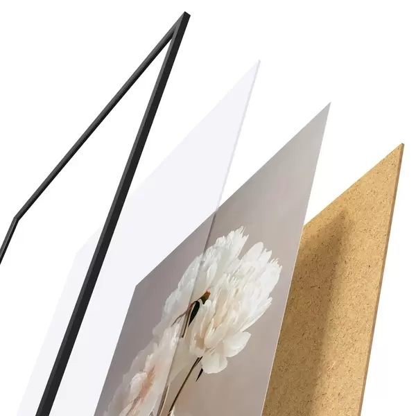 A poszter keretből, plexiből, nyomtatott képből és forgácslap hátlapból áll. A poszter a hátoldalon található rögzítőknek köszönhetően azonnal felakasztható a falra.