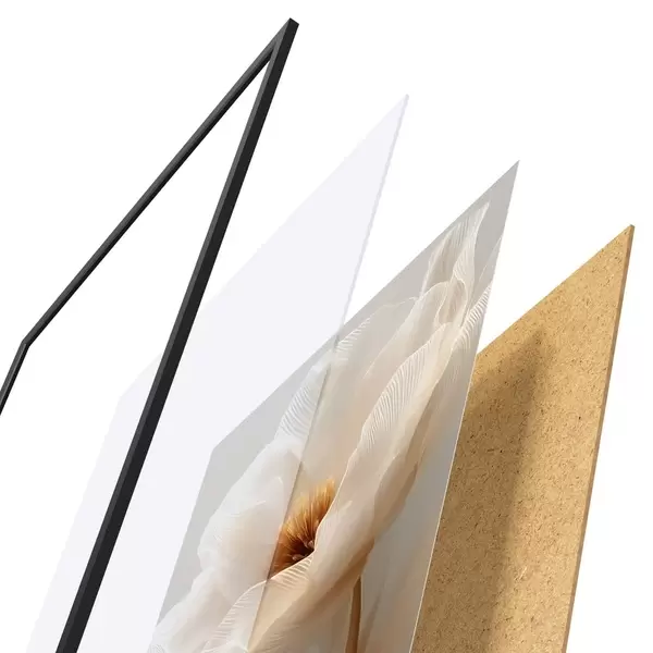 A poszter keretből, plexiből, nyomtatott képből és forgácslap hátlapból áll. A poszter a hátoldalon található rögzítőknek köszönhetően azonnal felakasztható a falra.