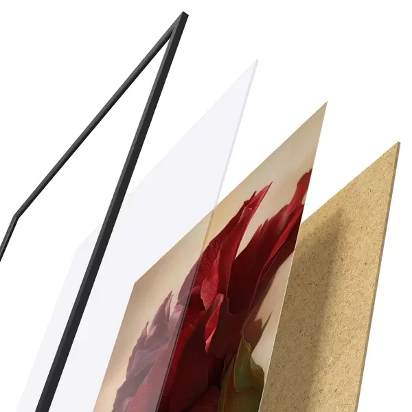 A poszter keretből, plexiből, nyomtatott képből és forgácslap hátlapból áll. A poszter a hátoldalon található rögzítőknek köszönhetően azonnal felakasztható a falra.