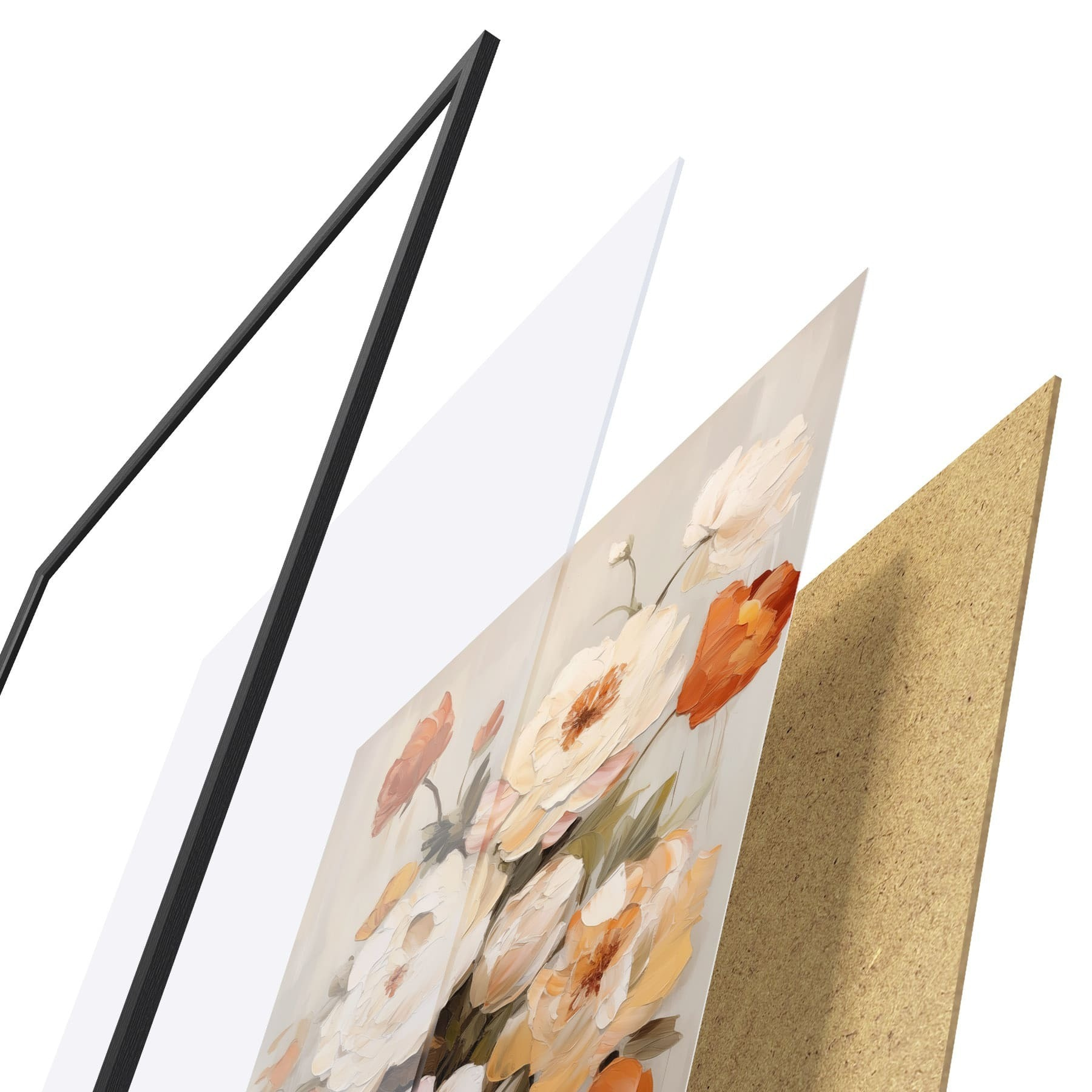 A poszter keretből, plexiből, nyomtatott képből és forgácslap hátlapból áll. A poszter a hátoldalon található rögzítőknek köszönhetően azonnal felakasztható a falra.