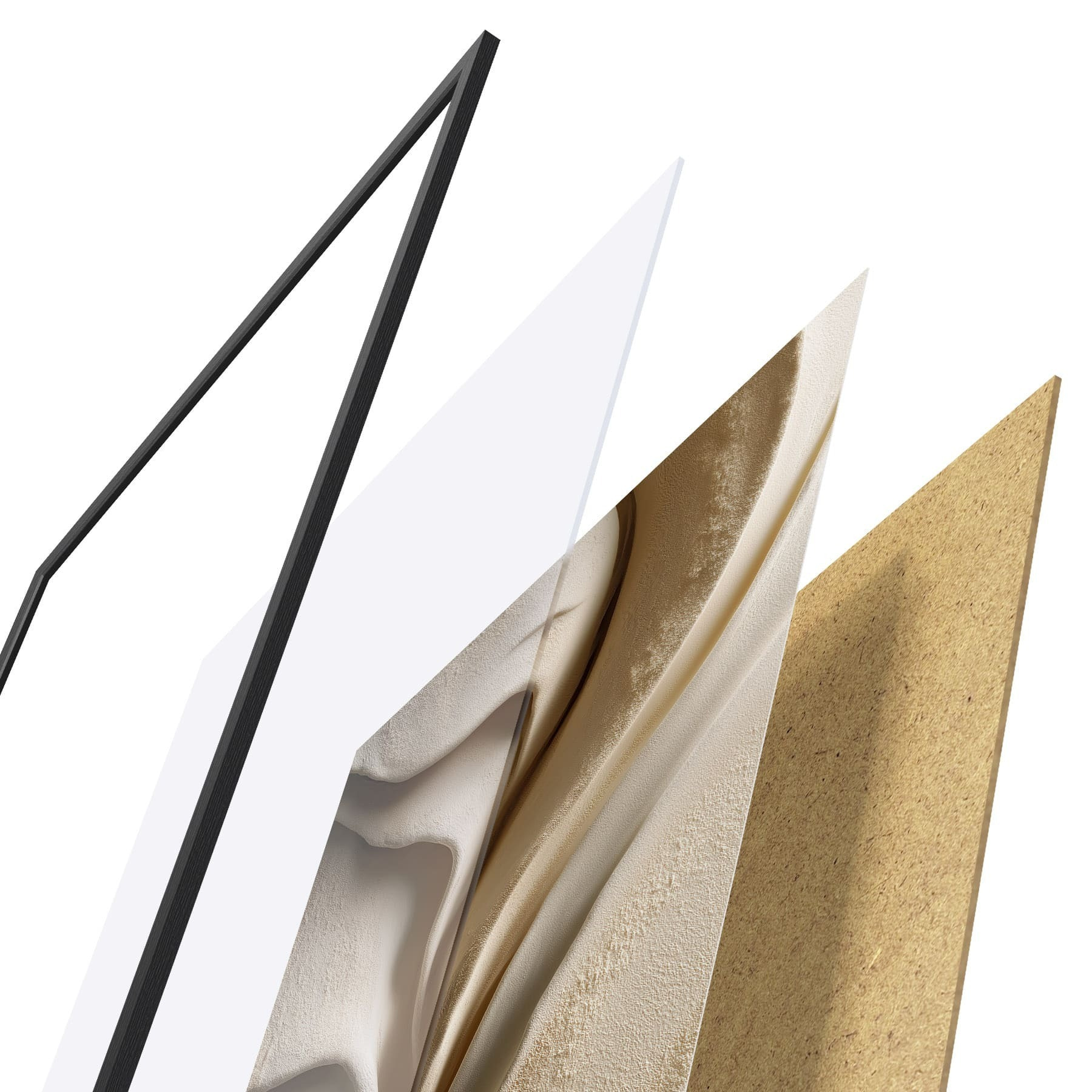 A poszter keretből, plexiből, nyomtatott képből és forgácslap hátlapból áll. A poszter a hátoldalon található rögzítőknek köszönhetően azonnal felakasztható a falra.