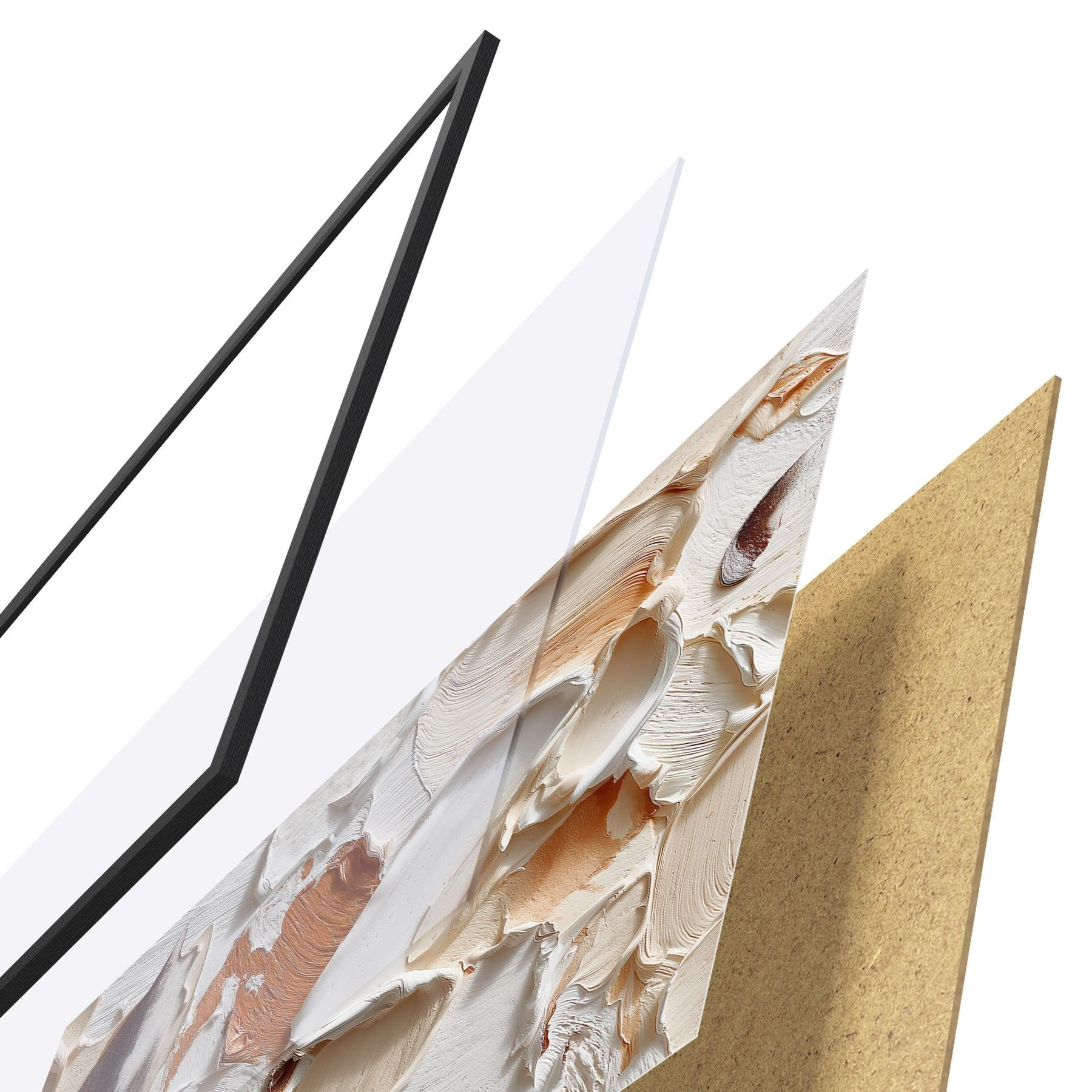 A poszter keretből, plexiből, nyomtatott képből és forgácslap hátlapból áll. A poszter a hátoldalon található rögzítőknek köszönhetően azonnal felakasztható a falra.