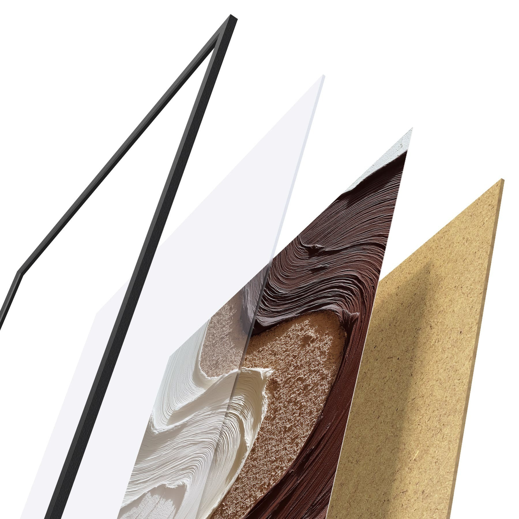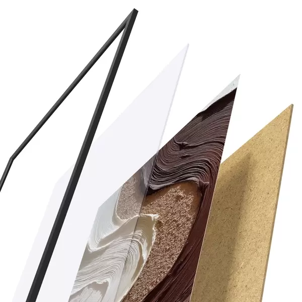 A poszter keretből, plexiből, nyomtatott képből és forgácslap hátlapból áll. A poszter a hátoldalon található rögzítőknek köszönhetően azonnal felakasztható a falra.